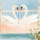 Traga beleza e romance atemporais para a sua casa com esta Impressão de Arte de Parede Família de Cisnes. Com dois cisnes elegantes formando um coração ao redor de seu filhote, aninhados em uma cama sonhadora cercada por rosas, videiras e cortinas suaves, esta obra de arte irradia calor, amor e serenidade.