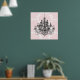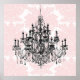 Arte de parede elegante e feminino em damasco rosa e branco com lustre de cristal preto e branco para escritório e boutique. Escolha uma moldura para combinar com a sua decoração. Impressão de arte de parede de lustre rosa elegante e sofisticada.