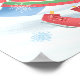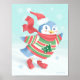 Um Pinguim festivo de inverno desliza alegremente através do gelo enquanto flocos de neve delicados caem contra um céu azul minúsculo! Ilustração original de Noël Snow.