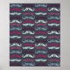 Um padrão de impressão de bigode divertido em um lindo tom de morango, violeta e azul em pó.