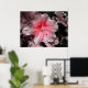 Foto de uma azálea cor-de-rosa macia, as pétalas borrifadas com gotas de chuva após uma primavera e melhoradas por coloração seletiva.