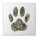 Um estilo de desenho animado de impressão de pata de cachorro de camo com efeito aflitivo aplicado à imagem. Azulejos decorativos personalizados. Ideia de presente para amantes de cães.
