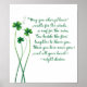 A design de tipografia caligráfica em verde com o sotaque de shamrock na borda esquerda mostra palavras desta bênção irlandesa: "Que você sempre tenha paredes para os ventos, um telhado para a chuva, chá ao lado do fogo, risos para animá-lo, aqueles que você ama perto de você, e todo o seu coração possa desejar."