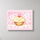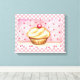 Esta impressão de canvas de arte de de gingham rosa apresenta um grande cupcake com uma cereja vermelha brilhante no topo. Esta decoração na parede do cupcake é excelente para um quarto, cozinha, creche, quarto de menina, padaria, negócios, etc... A imagem é de uma pintura original.