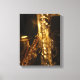 Belo impressão de canvas para o amante da música. Apresenta um saxofone de latão num fundo preto. Maravilha.