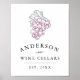 Ofereça seu amante de vinho favorito com este ponto de arte personalizado apresentando um aglomerado de uvas e folhas de uva em um estilo rústico de vintage gravado. Personalize com seu nome familiar, "adegas" e ano estabelecido.
