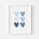 impressão de corações azuis de aquarela vai iluminar o espaço e o quarto do seu filho.