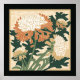 O crisântemo é um símbolo significativo na arte e cultura japonesas, representando longevidade, nobreza e perfeição. Um de um conjunto de impressões de arte do crisântemo japonês, este em verde e laranja.
