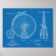 1882 Vintage high Wheer ou Penny Farthing bicicleta nos EUA ilustração técnica de design. engrenagens do pedal com rodas estabilizadoras. Plano de fundo do papel de impressão em plano. Mais impressões de patentes na nossa seção "Impressões de patentes dos EUA". Posters de propaganda em bicicleta sob nossa seção "Anúncios de publicidade em período de tempo"