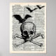 Impressão de Dicionário de Arte do Skull e Bats no Dicionário Vintage Página de Dicionário Excelente de Reprodução para decoração de parede, decoração de fazenda ou arte de parede de sala de estar. Presente de Excelente para amantes de Livros!