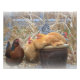 Esta impressão de fotos apresenta um bando de galinhas fazendo uma festa à tarde.