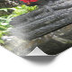 Esta estátua de pedra cinza de uma figura humana sentada contém uma flor vermelha de hibisco. Senta-se pacificamente meditando no Jardim da Paz do Jardim Botânico de Bali, num fundo de plantas da selva verde. As samambaias e palmas verdes interagem com troncos de cinza e sombras pretas. Foto tirada em Ubud, Bali, na Indonésia. Copyrght Gail Storrs 2006.