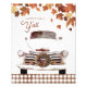 Caminhão branco e bonito com uma redação que diz Happy Fall Y'all em cores de laranja, ouro e marrom.