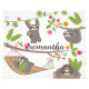 Cena de preguiça-branca com bebês e flores Personalizável com campo de nome personalizado.