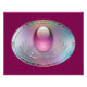 Um design azul pastel, lavanda e rosa, com um ovo rosa translúcido em uma posição de filigrana prateada, circulado por uma estrutura oval prateada leve, com quatro gemas mais lisas, como ovos coloridos.