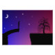 Um desenho de um homem em pé abençoado numa ponte quebrada, olhando para o outro lado do golfo onde uma árvore salgueira solitária se posiciona. No céu atrás dele estão a lua e as estrelas num céu azul escuro, desaparecendo para vermelho no extremo para o início do nascer do sol. Uma ilustração das emoções da esperança, do desespero e da solidão enquanto ele chega ao fim da estrada e encontra o caminho intransponível.