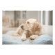 Impressão de foto de alta qualidade de um Ouro Retriever que repousa no travesseiro na varanda.