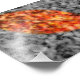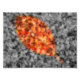 Fotografia de outono, colorida seletivamente, de folhas mirtilosas caídas de crepe, com forma de folha moldada a ouro, vermelha, laranja e amarela, contra fundo preto e branco.