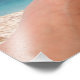 Foto de impressão de pés de mulheres com verniz cor-de-rosa nas unhas em uma praia branca em uma ilha no mar mediterrânico relaxando durante as férias de verão.
