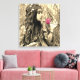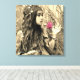 Impressão de uma jovem cigana segurando uma rosa rosa em tons de sépia.