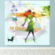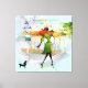 Garota parisiense andando com o cachorro na rua da cidade. Plano de fundo de abertura da arte em água e cor azul alterável - (para alterar a cor de fundo, basta usar o botão Personalizar este e o botão de edição - isso mostrará uma opção de plano de fundo onde você poderá alterar o plano de fundo azul para qualquer cor que corresponda ao seu decor. As placas de aquarela também são removíveis se você quiser.
