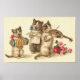 Uma pequena música noturna com o Gatinho Chorus. Vintage trabalho de arte de três gatinhos tocando seus instrumentos e cantando.