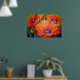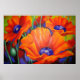 Beleza extraordinária nesta design de papoila laranja e indigo.