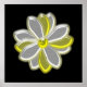 Este brilhante impressão floral apresenta uma imagem digital de uma flor margarida com pétalas brancas e amarelas com um centro amarelo. As pétalas parecem brilhar com uma bela qualidade refletiva. A cor de fundo é preta para o máximo de contraste e o resultado é impressionante. Uma borda amarela completa a design. Este impressão está disponível em vários tamanhos diferentes, sendo o maior mostrado aqui.