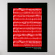 Ideia para decorar uma parede de quarto para um músico. Uma imagem vermelha de fundo das notas musicais e a citação: "Sem música, a vida seria um erro" de Nietzsche - um item decorativo legal com tema musical