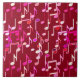 Uma cascata de notas musicais em cor-de-rosa, rosa claro, bege e e creme, sobre fundo de vinho com lama