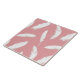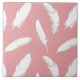 Impressão de penas brancas em cor-de-rosa suave médio - design gráfico misto de penas brancas, flutuando sobre um fundo colorido contrastante