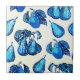 Azulejo cerâmico em impressão de peras e folhas dispersas, adaptado a partir de arte botânica safra, melhorada digitalmente e colorida, em índigo profundo e tons de azul denim em branco