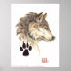 Esta imagem de um perfil de cabeça de lobo com impressão de pata de lobo era originalmente uma design de tatuagem. A imagem foi feita em lápis coloridos em uma paleta de tons de terra marrom.