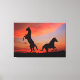 Apresentando um fôlego tendo em vista duas silhuetas de Black Stallone.Com o sol laranja colocado sobre elas, um cavalo está sobre suas pernas traseiras.este é um belo Impressão de pintura a óleo nesta Canvas é o campo com uma vista de excelente.