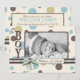 Impressão de ponto divertido com arco de fita de aparência 3D e cartão com fotos de anúncio de nascimento do pacificador.
