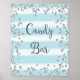 Poster impressão para a placa de casamento Candy Bar com falso design de cintilação prateada e listras azuis claras de cor d'água.