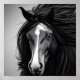 Belo retrato negro e branco de cavalo Frísia, um impressão de arte digital com IA