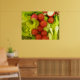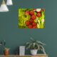 Essa bela impressão apresenta uma fotografia de uma mistura de ingredientes salados em um coentro. A fotografia saborosa inclui tomates, rabanetes, cebolas de primavera e alfaces.
