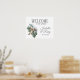 A impressão de, bela, moderna e elegante, placa de casamento com aquarela apresenta um buquê no estilo Boho de folhagem e flores verdes, castanhas e brancas e um borrão de ouro com texto totalmente personalizável em fontes de cinza complementares. Adicionar os detalhes de casamento/noivado/recepção dos casais