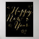 Símbolo de Feliz ano novo de folha de ouro tipográfico impresso em fundo preto. As dimensões do impressão de sinal (poster) são de 11 por 14 polegadas.
