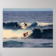 Surfistas cavalgam as ondas ao largo da costa da Grande Ilha do Havaí.