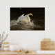 este cisne de solteiro estava a desfrutar de uma última lavagem do dia enquanto o sol afundava no céu num dia de outono em outubro. O cisne mudo é uma ave-d'água branca muito grande. Ele tem um pescoço em forma de S longo, e uma tábua laranja com preto na base dele. Voa com o pescoço estendido e com batidas lentas regulares. A população do Reino Unido aumentou recentemente, talvez devido a uma melhor proteção desta espécie. O problema do envenenamento por chumbo nos rios de planície foi também, em grande medida, resolvido através da proibição da venda de pesos de pesca de chumbo. Algumas aves ficam em seus territórios o ano todo, enquanto outras se deslocam em distâncias curtas e formam rebanhos de inverno. Em tempo frio, alguns pássaros chegam da Europa para o leste da Inglaterra.