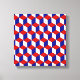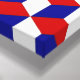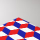 Blocos 3D em vermelho, branco e azul. Eles são empilhados de forma que à medida que você os olha, a ilusão óptica é que eles mudam de orientação.