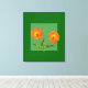 Flores laranja. Imagem fotográfica de dois calendários cor de laranja colocada sobre um fundo verde médio com um centro difuso para formar um quadro, fazendo com que as flores pareçam tridimensionais.