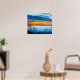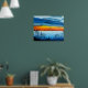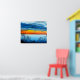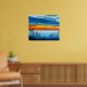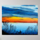 Esta tela de 24"x20" apresenta um belo pôr do sol sobre a água com um tema azul marcante. O original foi pintado em acrílicas pelo artista de Ohio David Pepper em abril de 2021. O papel é uma canvas premium com acabamento de brilho.