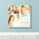 Belo impressão de canvas de arte personalizada na parede de com 3 fotos personalizadas de sua família organizadas em uma colagem de fotos quadradas com seu nome de família e monograma no canto inferior. Adicione suas fotos da família favorita e crie uma bela impressão de canvas. Clique em Personalizar para mover fotos, alterar a cor do plano de fundo e personalizar fontes e cores do monograma. presente de excelente para a família, amigos, pais e avós!