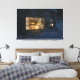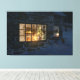 Olhando nas janelas da cabana numa noite de inverno gelada antes do Natal. Velas vermelhas brilhantes estão acesas, mandando um brilho quente sobre a neve. A árvore de Natal e o manto são decorados com creme e bolas de ouro. Um gato calico olha pela janela com uma galinha sentada do lado de fora, e um par de raposas percorre o canto da casinha.