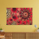 Um desenho fratural brilhante com espirais ornamentados de vermelho escuro e vívido, sobrepostas com filigrana de ouro como conchas metálicas e estudadas com rubis reluzentes.