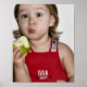 Patriótico vermelho, branco e azul, poster americano com uma menina comendo uma maçã verde. Seus melhores esportes nos EUA no meio.
