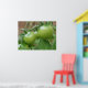 Esta bela impressão mostra uma fotografia de um monte de tomate verde-cereja imaturo crescendo em uma fábrica de tomate em um jardim suburbano. A fotografia foi tirada usando macro fotografia para um resultado detalhado.